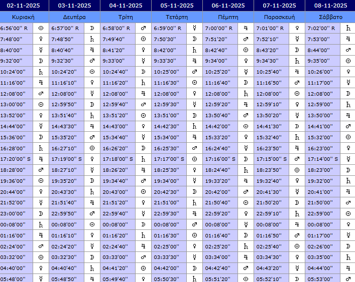 ΠΛΑΝΗΤΙΚΕΣ ΩΡΕΣ 2.11-8.11.2025