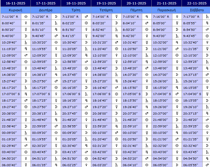 ΠΛΑΝΗΤΙΚΕΣ ΩΡΕΣ 16.11-22.11.2025